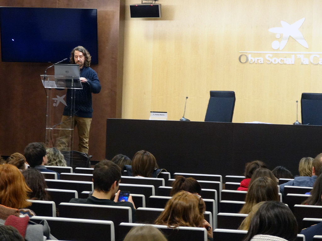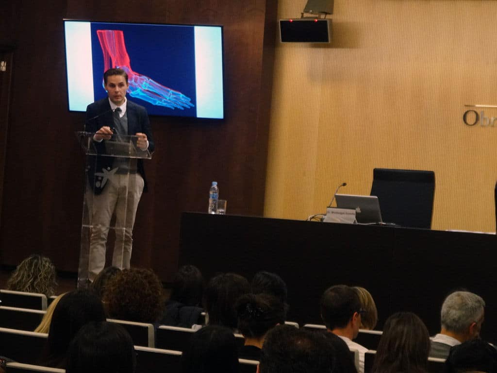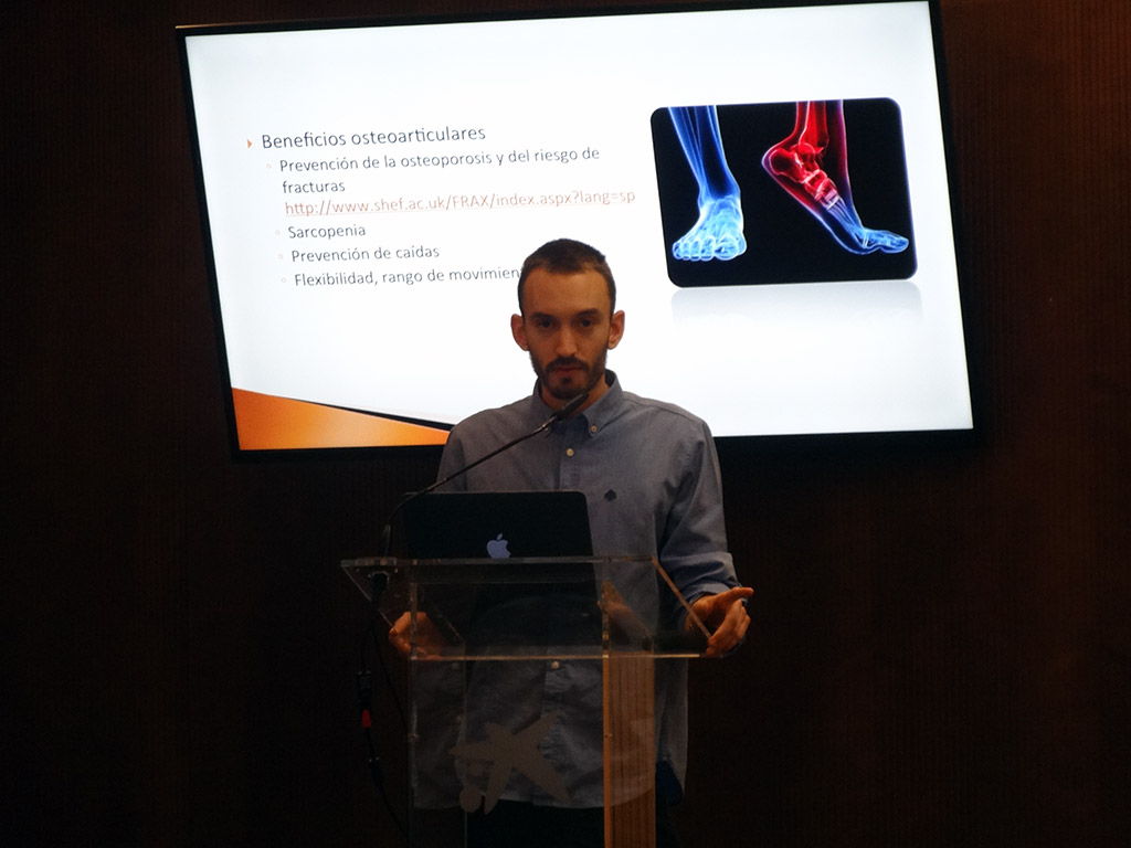 - D. Caleb Araguàs, graduado en Podología y master en fisiología integrativa durante su ponencia.