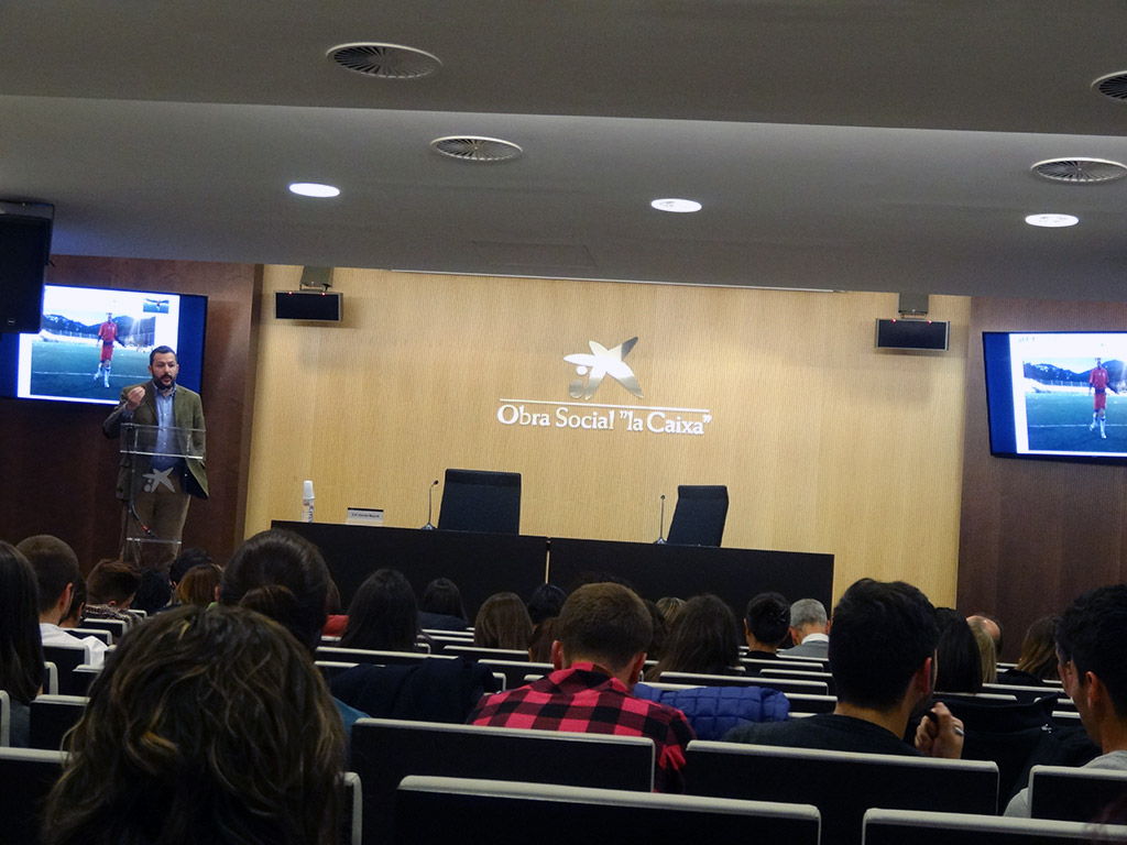 - El Dr. Ferran Espejo, osteópata y fisioterapeuta especializado en el rendimiento durante su ponencia junto a D. Miguel Angel Baños.