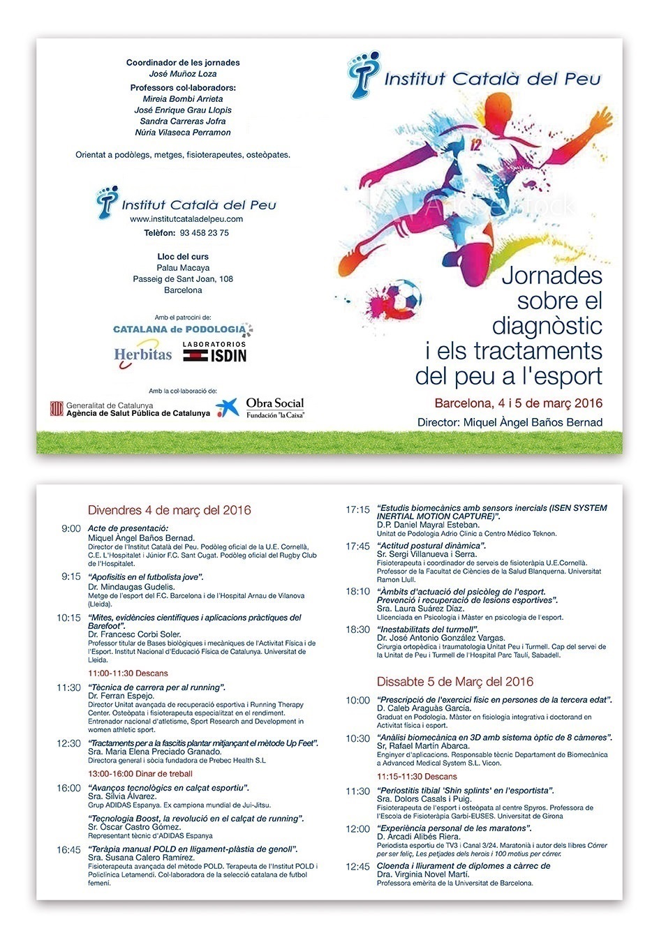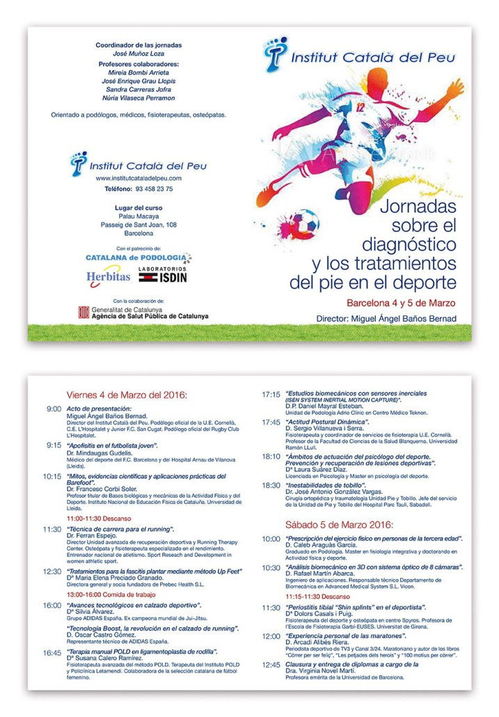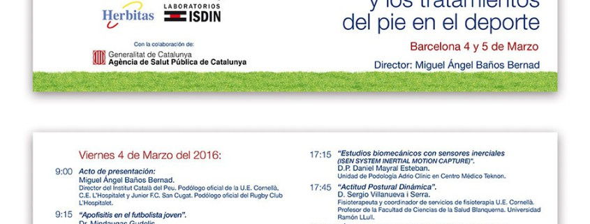 Els dies 4 i 5 de Març, l’Institut Català del Peu organitza dins dels cursos de formació unes Jornades sobre el peu i l’esport. Comptarem amb professionals de reconegut prestigi i sempre des d’una visió multidisciplinària.