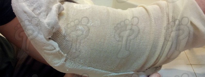 - Una vez empapado el material de agua, no pierde la consistencia. Característica que no cumple la venda de yeso al mojarla en exceso.