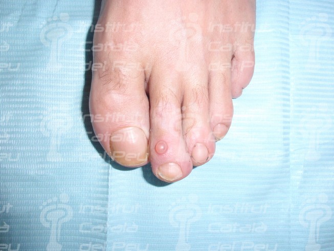 El quiste mixoide o mucoide digital se presenta como un nódulo o tumoración benigna de aspecto carnoso, prevaleciendo en el dorso de los dedos a nivel de la articulación interfalángica distal y en la base de las uñas. Se podría catalogar como pseudoquiste ya que no posee un epitelio que lo recubra. Suelen aparecer de forma individualizada con un diámetro que abarca desde los pocos milímetros hasta superiores al centímetro cuadrado.