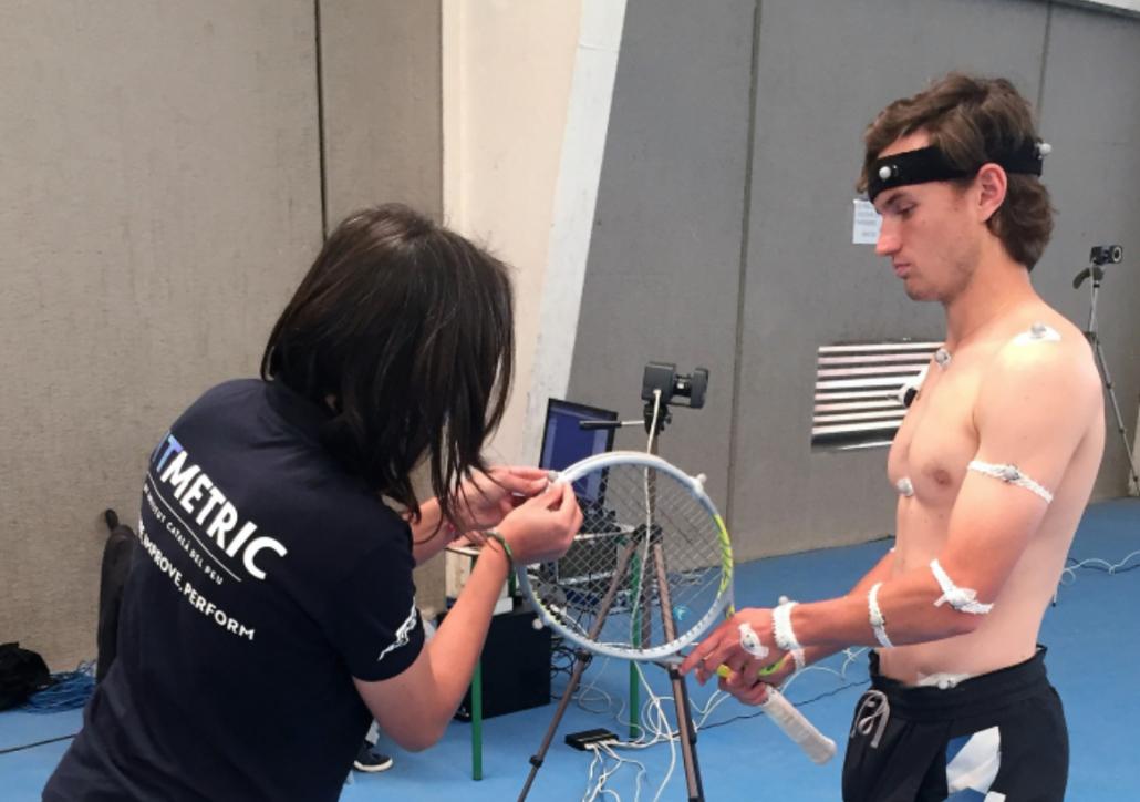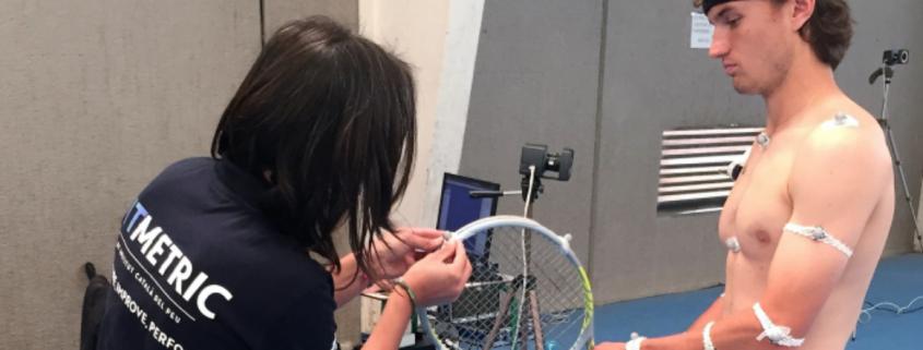 A la sesión de biomecánica le acompañó su entrenador y los técnicos de la Federació Catalana de Tennis. Pudimos charlar sobre los aspectos técnicos más importantes a tener en cuenta para de sacar los datos de mayor interés para ellos. Entre los ejercicios analizados se encuentran el saque, el drive y el revés. El registro con tecnologías biomecánicas consistió en registrar la cinemática del tenista durante las ejecuciones de los gestos técnicos mencionados en el contexto de juego, además del análisis de diferentes músculos del tren superior e inferior. Posteriormente, los gestos son analizados y volcados a un informe que se trabaja junto con los técnicos de la Federació Catalana de Tennis y se les presenta al tenista y a sus técnicos. A partir de aquí se iniciaría un proceso de mejora de los aspectos técnicos analizados.