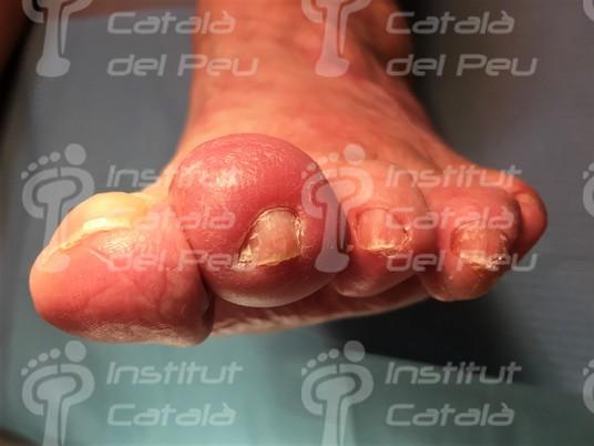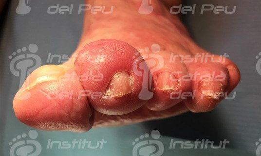 Cellulitis on second toe with swollen skin.
