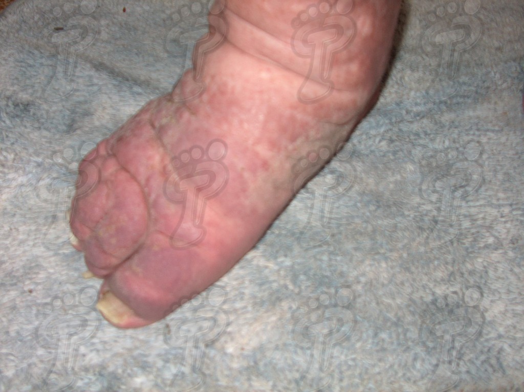 Se caracteriza por inflamación de los vasos linfáticos, ganglios y piel debido a infecciones bacterianas por fallo del sistema inmunitario como consecuencia del trastorno linfático. La elefantiasis presenta una piel dura que recuerda al elefante (de ahí su nombre) y causa también malformaciones óseas. El diagnóstico se basa en la biopsia del ganglio linfático y el examen microscópico.