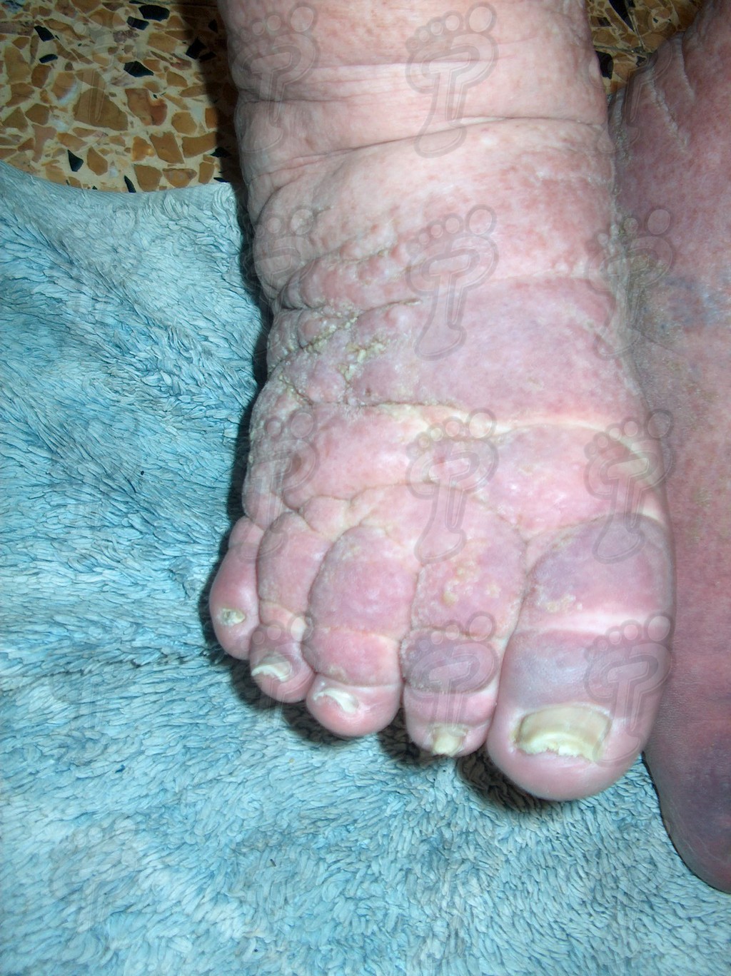Elefantiasis. Observe las características dérmicas.