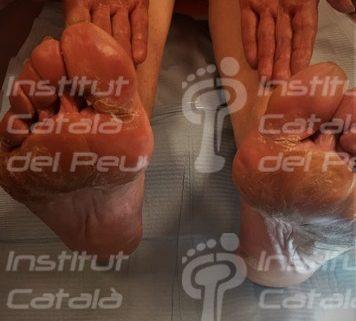 Me pareció investigar urgente , ya que un paciente presenta hiperqueratosis plantar, pero en demasía, y entre su piel y hiperqueratosis, helomas y clavos plantares. A pesar del constante deslaminado y cremas con urea al 10% no logra mejorar .
